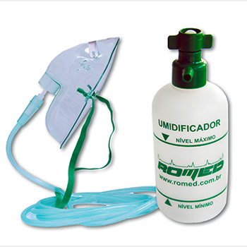 Umidificador c/ frasco 250 ml p/ O² c/ ext. e máscara adulto Romed